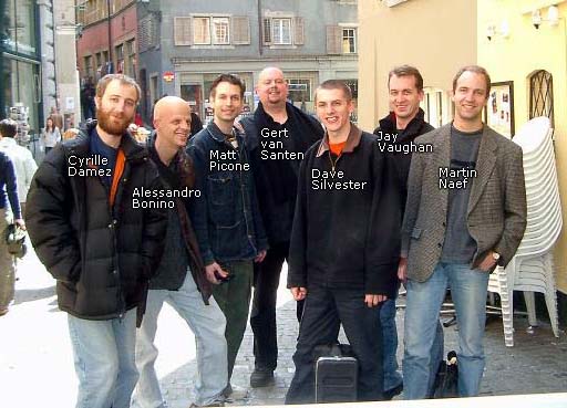 It was the second weekend of April 2003. Several regulars from the music-bar mailing list at ampfea.org met in Zurich, Switzerland, for an extended jam session at my place. It was 5 days of jamming, eating and having fun. In addition to the people below, Ilona Kocsis and Shannon Tubman joined the crowd. Together, we recorded hours of music, a small selection can be found here.